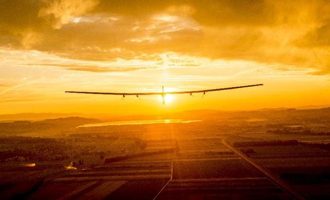 Letoun s Borschbergem v kokpitu narazil na první velkou překážku při přeletu z Číny na Havajské ostrovy, který měl trval 130 hodin vkuse. Kvůli dešti musel neplánovaně přistát v japonské Nagoji, kde stále čeká ve speciálním přenosném letištním hangáru, až pršet přestane.