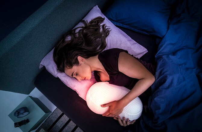 Chytrý polštář vypadající jako přerostlá plyšová fazole dýchá plynule a vyrovnaně, aby majitele ukolébal lehce k spánku. Zklidní rozrušeného nespavce, který se pořád převaluje, tím, že jeho dech synchronizuje s rytmickým robotickým dýcháním. Stačí nastavit, jak dlouho má trvat výdech (4 až 15 sekund) a láskyplně se k plyšové fazoli přitulit.