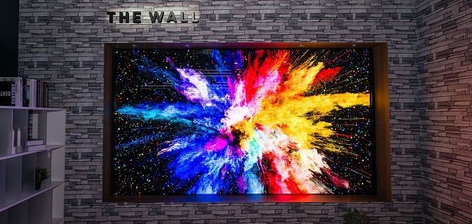 Firma Samsung nezůstala pozadu a ukázala The Wall, televizi s technologií MicroLED, která se skládá z více panelů, takže lze měnit velikost obrazovky.
