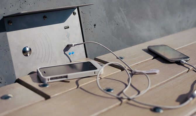 Energii pro „umírající přístroj“ získáte pomocí USB konektoru nebo zcela bez kabelu prostřednictvím indukce. Zároveň chytrá lavička neustále monitoruje kvalitu ovzduší. Všechny své funkce zajišťuje pouze prostřednictvím solární energie.