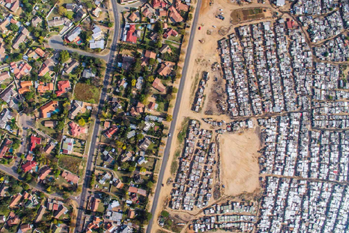 Zmínky o nůžkách, které se povážlivě rozevírají mezi bohatými a chudými, se v poslední době stávají novinářským klišé. Jihoafrický fotograf Johnny Miller pořídil s využitím dronu výmluvné fotografie Kapského města a okolí, které lépe než slova ilustrují, jak v praxi vypadají propastné sociální rozdíly. Ve skutečnosti nedělí slumy od luxusních rezidencí žádné propasti, ale mnohdy jen desítky metrů.