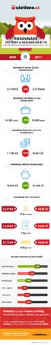 Průměrné náklady domácností na plyn se zvýšily mezi lety 2005 a 2011 o 41%. Jak rychle rostou v porovnání se základními potravinami či výší průměrné mzdy? Kolegové z www.usetreno.cz připravili zajímavou infografiku.
