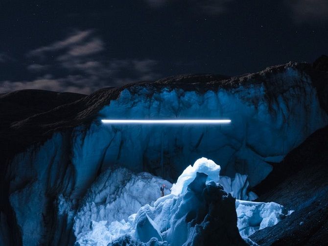 Kromě hornaté krajiny využil Wu svoji světelnou podívanou také při focení ledovce, který postupně mizí vlivem změn klimatu. Kromě fascinujících fotografií je k vidění také krátké dokumentární video, ve kterém Wu představuje svůj způsob fotografování.