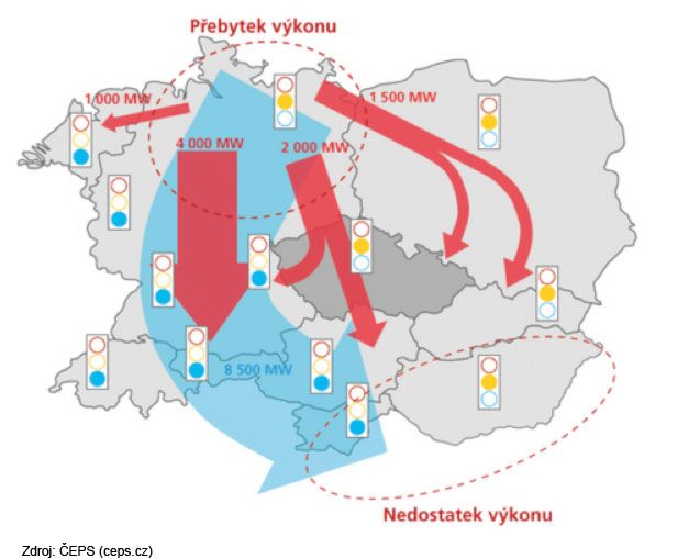 Německé námluvy se zelenou elektřinou urychlila panika z jaderné energie. Němci po výbuchu Fukušimy v roce 2011 zavřeli několik jaderných reaktorů. Jenže elektřina vyrobená z nevyzpytatelného větru a slunce na severu Německa protéká do průmyslových oblastí na jihu země i do Rakouska právě přes českou přenosovou soustavu. Vnitroněmecká soustava totiž tak velké objemy energie neunese. Nárazové přebytky energie neputují jenom k nám, ale i do Polska a Belgie a Nizozemí. V zemích Beneluxu proto již vybudovali transformátory, které dokáží objem přiváděné energie regulovat. U nás a v Polsku se stavba obřích strojů teprve plánuje.