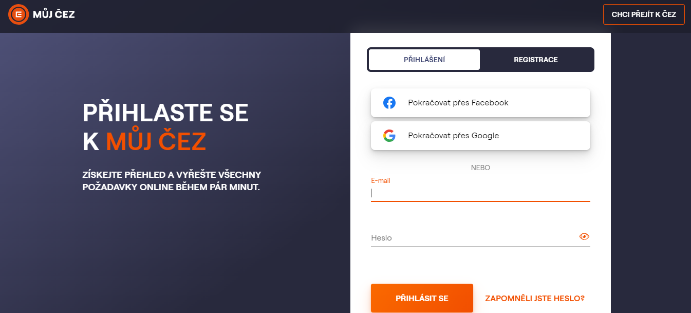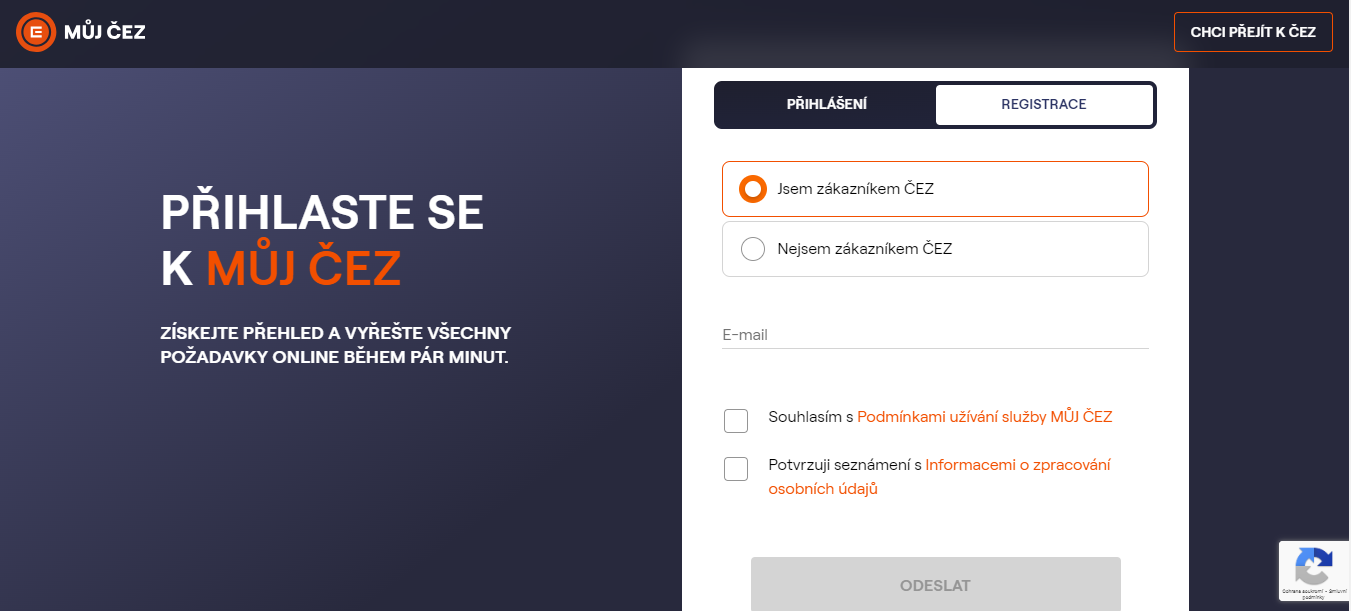 Aplikaci si můžete jednoduše stáhnout do mobilního telefonu, nebo se přihlásit přes webové stránky www.muj.cez.cz. Nejdříve je nutné se do aplikace zaregistrovat. K tomu je potřeba využít váš e-mail, na který přijde potvrzení o registraci. Následně zvolíte vlastní heslo pro přihlášení a vypíšete datum narození.