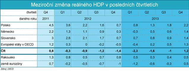 Pozitivní ekonomické zprávy přineslo až poslední čtvrtletí loňského roku. Reálné HDP České republiky i našich sousedů se v meziročním srovnání přestalo potácet kolem nuly a konečně se potvrdil rostoucí trend.