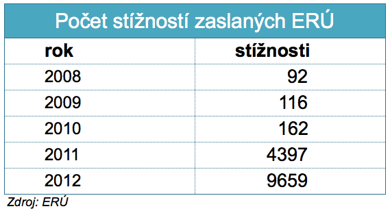 Do skupiny stížností, které mohou spotřebitelé adresovat regulačnímu úřadu, patří zejména problémy s připojením, nekalé jednání podomních prodejců (např. zfalšované podpisy, podpisy se zpětným datem, poskytnutí klamavých a lživých informací, nátlak na seniory apod.), špatné vyúčtování nebo vyměření sankčních poplatků, nezákonný způsob sjednání nebo ukončení smlouvy aj. Kvůli neustále rostoucímu počtu stížností a podnětů ze strany spotřebitelů od tohoto roku vznikne na ERÚ nový institut energetického ombudsmana, který by měl vyřízení stížností urychlit.