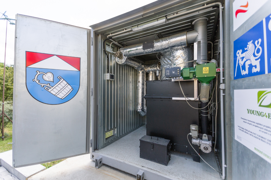 Kotel spaluje dřevní pelety a funguje plně automaticky s minimálními požadavky na údržbu. Při hoření vzniká teplo, které ohřívá cirkulační médium, jenž se přeměňuje na páru. Ta roztáčí turbínu a přes generátor vytváří elektrický proud. Následně se pára ochlazuje a teplo se zadržuje v akumulačních nádobách v jednotlivých budovách, kde se skladuje pro potřebu vytápění.