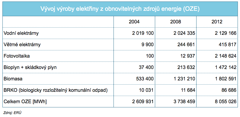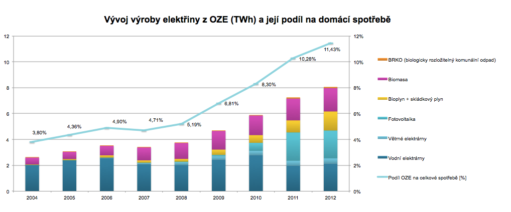 U nás hrála dlouho hlavní roli energie z vodních elektráren, ale v roce 2012 ji v objemu vyrobené energie předběhla milovnice všech skandálů, fotovoltaika. Raketový vzestup na výsluní zaznamenala i energie získávaná spalováním bioplynu. Boom nových hvězd na poli obnovitelných energií se pokusil zastavit nedávno stát, když z dotačních programů na rok 2014 vyškrtnul právě majitele fotovoltaických elektráren a bioplynových stanic. Navíc u ostatních zdrojů energie se podpora snížila.