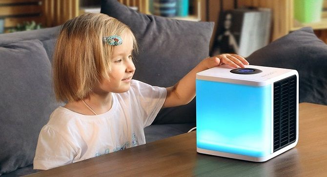 U Evapolaru do vodní nádržky nalijete 750 nebo 1500 ml tekutiny z kohoutku, kterou nasají speciální polštářky z mikrovláken. USB kablík z kostky zapojíte do notebooku či power banky. Účty za energii nijak nenarostou, protože osobní klimatizace spotřebuje stejné množství elektřiny jako úsporná žárovka. Malý větráček se roztočí a už to jede. Vypařovaná voda ochlazuje a zároveň zvlhčuje vzduch v malém okruhu s poloměrem 1,5 až 2 metry. Každá kancelářská krysa sedící za svým stolem si tedy může lebedit ve vlastním chládku.