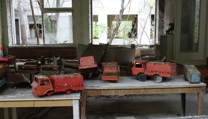 Sbírka autíček v mateřské školce nechala rabující zloděje chladnými. Mnoho přístrojů z opuštěných domácností si z Pripjati nelegálně odnesli a prodali na černém trhu.
