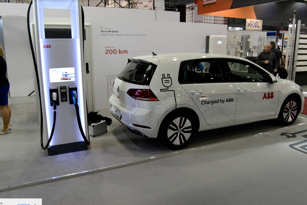 Společnost ABB zde ukázala svou „nabíječku budoucnosti“ s výkonem 350 kW. Společnost slibuje, že za pouhých 8 minut dobíjení získá elektromobil energii na 200 kilometrů dojezdu.