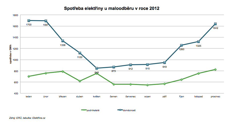 V České republice topíme většinou 7 a 8 měsíců v roce. Roční období proto výrazně mávají se spotřebou elektřiny u maloodběratelů z řad domácností. U maloodběratelů, kteří patří k podnikatelům, připadne větší část využité energie na výrobu, takže vliv rozdílných teplot mezi létem a zimou se projeví mnohem méně.