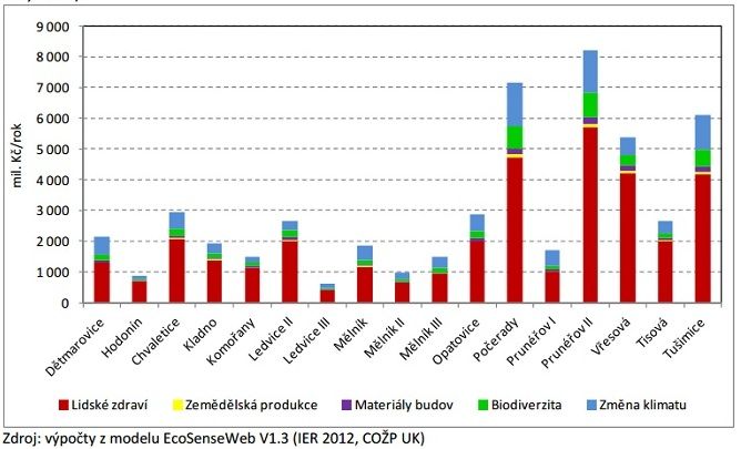 Zdroj: Melichar, J. – Máca, V. – Ščasný, M.: Měrné externí náklady výroby elektrické energie v uhelných parních elektrárnách v České republice (2012)
