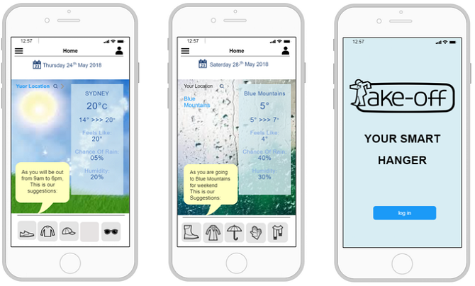 S tímto věšákem je situace jiná. Dokáže sám detekovat, že před ním stojíte, a hned se pustí do práce. Podle aktuální předpovědi počasí ve vaší lokalitě, kterou zařízení získává pomocí připojení k internetu přes wifi, nalistuje příslušné ikony a vy hned vidíte, jaké svršky a doplňky se vám budou ten den hodit.