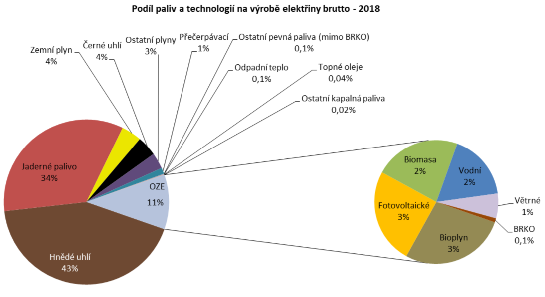 Rostoucí spotřebu uspokojovala vyšší výroba, která dosáhla 88 TWh. Nejvíce rostla výroba elektřiny z jaderných elektráren (+5,6 %). Více elektřiny se také produkovalo z hnědouhelných elektráren, a to o 756 GWh (+2,0 %). Z hnědého uhlí se tak vyrábí 43 % veškeré elektřiny v České republice. Brzdit uhelné elektrárny ale může v tomto roce rekordní cena emisních povolenek, která by měla ještě nadále růst.