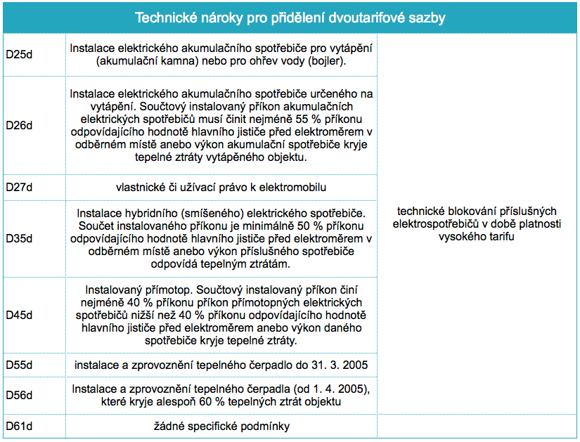 Pro přidělení dvoutarifové sazby musíte splnit technické požadavky
